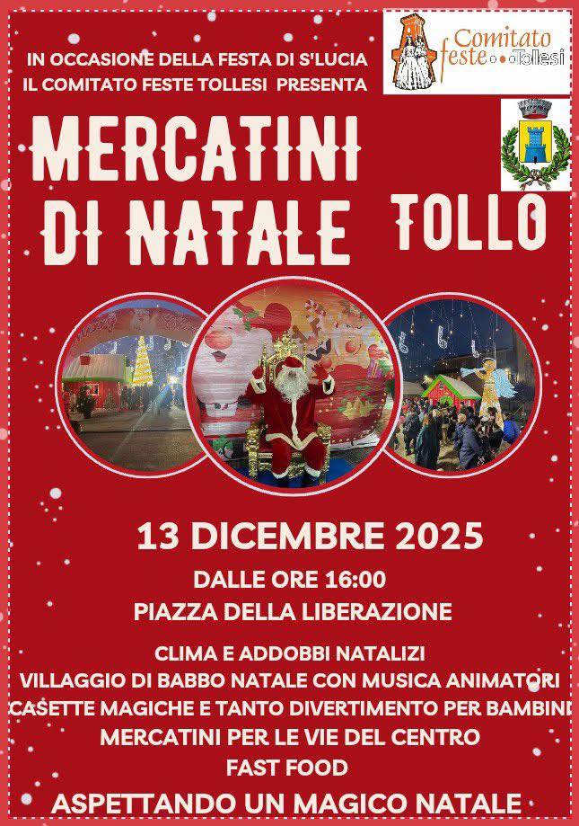 Il mercatino di Natale di Tollo è un vero gioiello, un luogo incantato dove profumi di dolci appena sfornati e sapori tipici della cucina invitano a passeggiare tra le vie della città. Ogni tazza fumante di tè, le idee regalo e i prodotti artigianali fatti a mano creano un'atmosfera accogliente e festosa, perfetta per chi desidera immergersi nella magia del Natale.