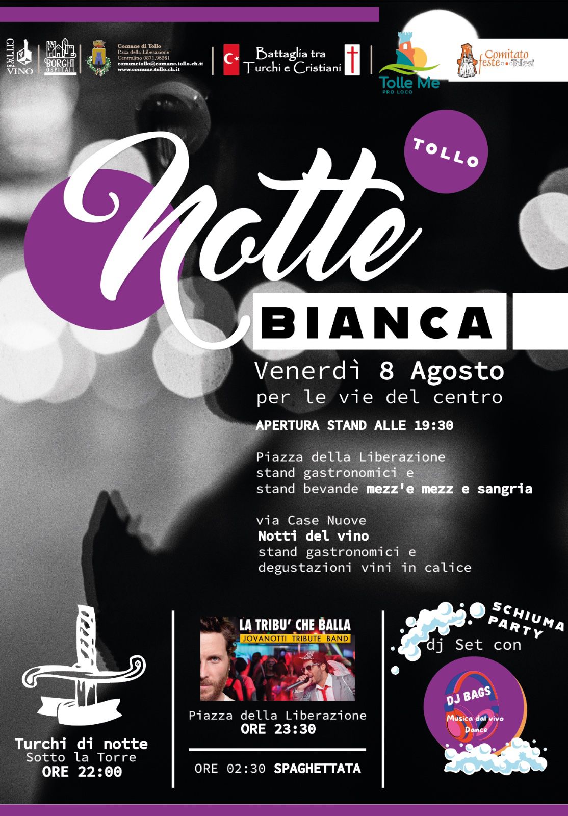 Comitato feste tollesi e per loco Tolle me presentano la notte nella tenutaCi sono diversi numeri nel paese per le celebrazioni in un contesto molto diversoStand gastronomici apertura ore 19:30La Tribù che balla (copertina Jovanotti) dopo la battaglia ore 23 e 30.